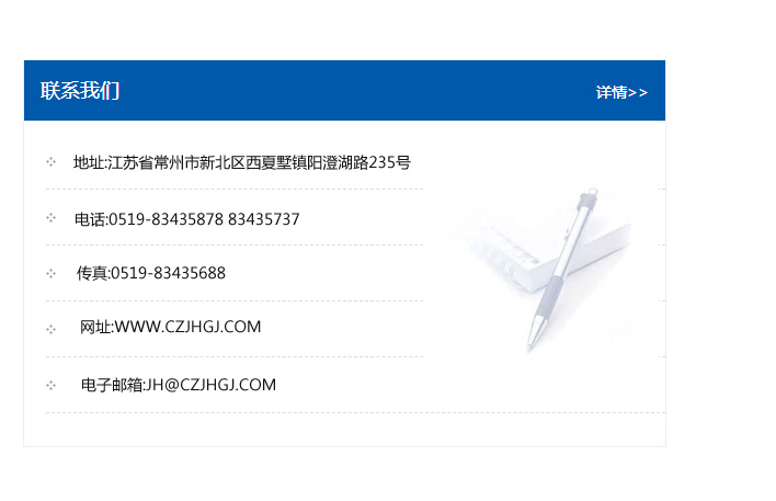 傳真:0519-83435688    郵編:213135    網址:WWW.czjhgj_com.dfcjzx.com    電子郵箱:JH@czjhgj_com.dfcjzx.com